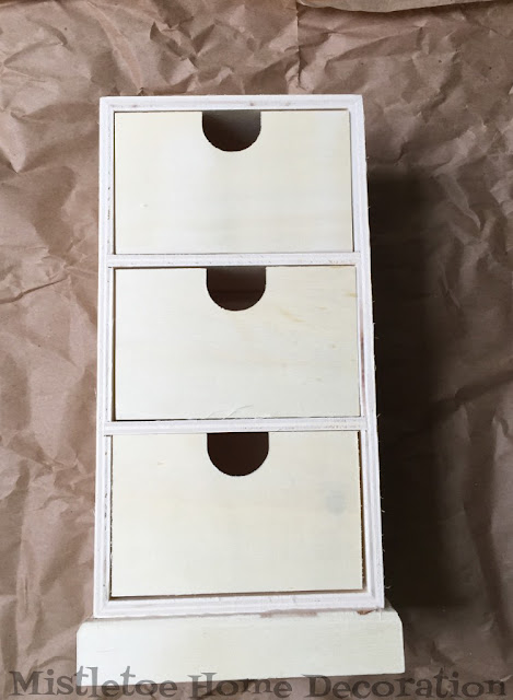The basic is a wooden box that I painted white first, after I sanded a little bit, then I put on a very-very light blue layer.