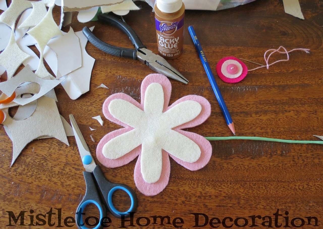 7. Glue a smaller felt flower on the big flower. (With this you hide the wire)