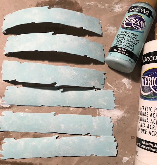 I painted them with DecoArt Spa Blue paint, then I tapped a little white paint (White Wash) on the surface.